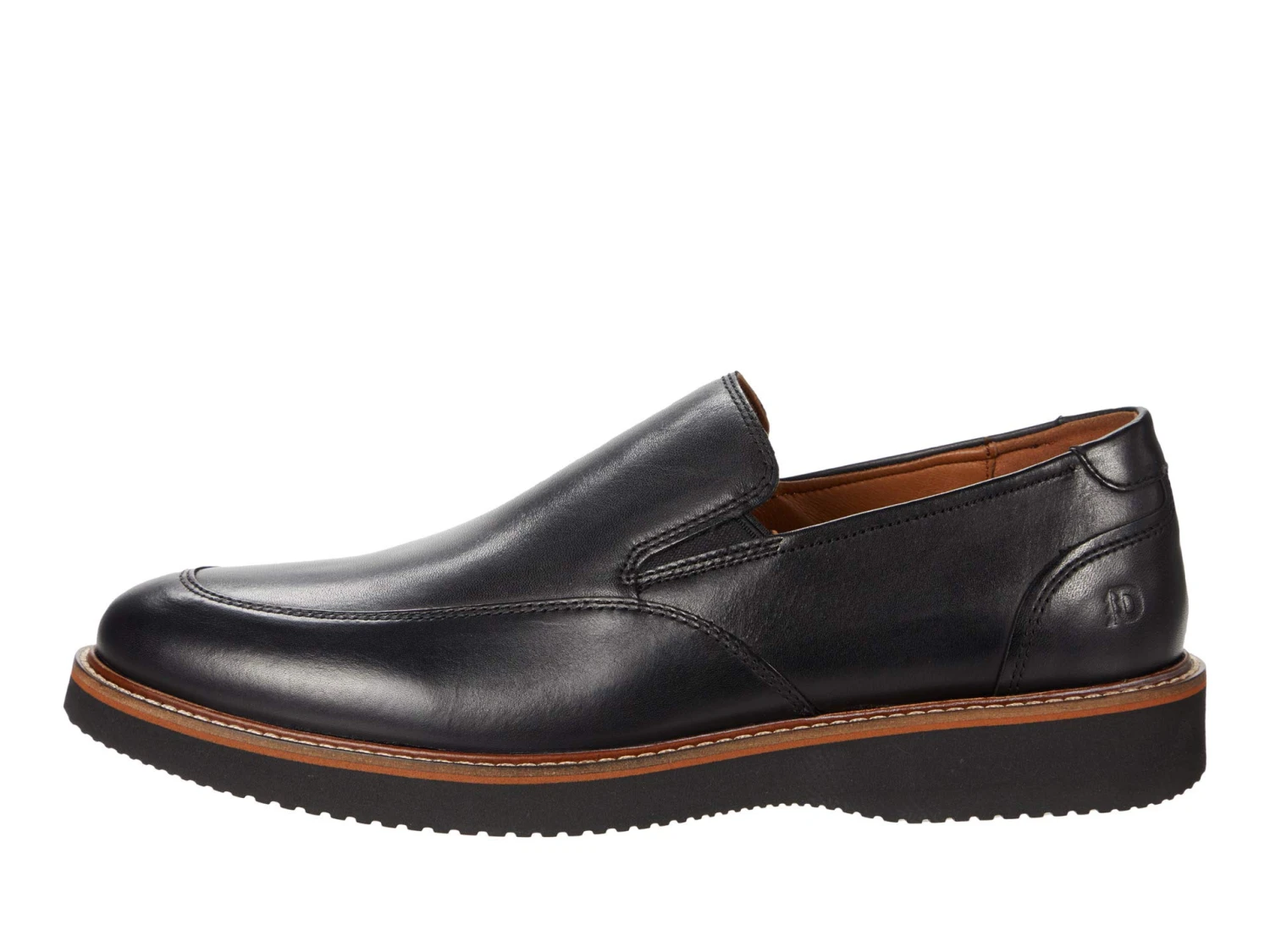 - Step out in style and comfort in the leather Dunham® Clyde Slip-On, with a premium feel inspired by Italian design. The leather lining and footbed cover create breathability and flexibility. The molded EVA and memory foam footbed provides lightweight impact absorption cushioning, while the Extralight® sole is ultra-light without sacrificing durability and support. With the smooth, sleek look, these shoes can be paired with dress pants or jeans.