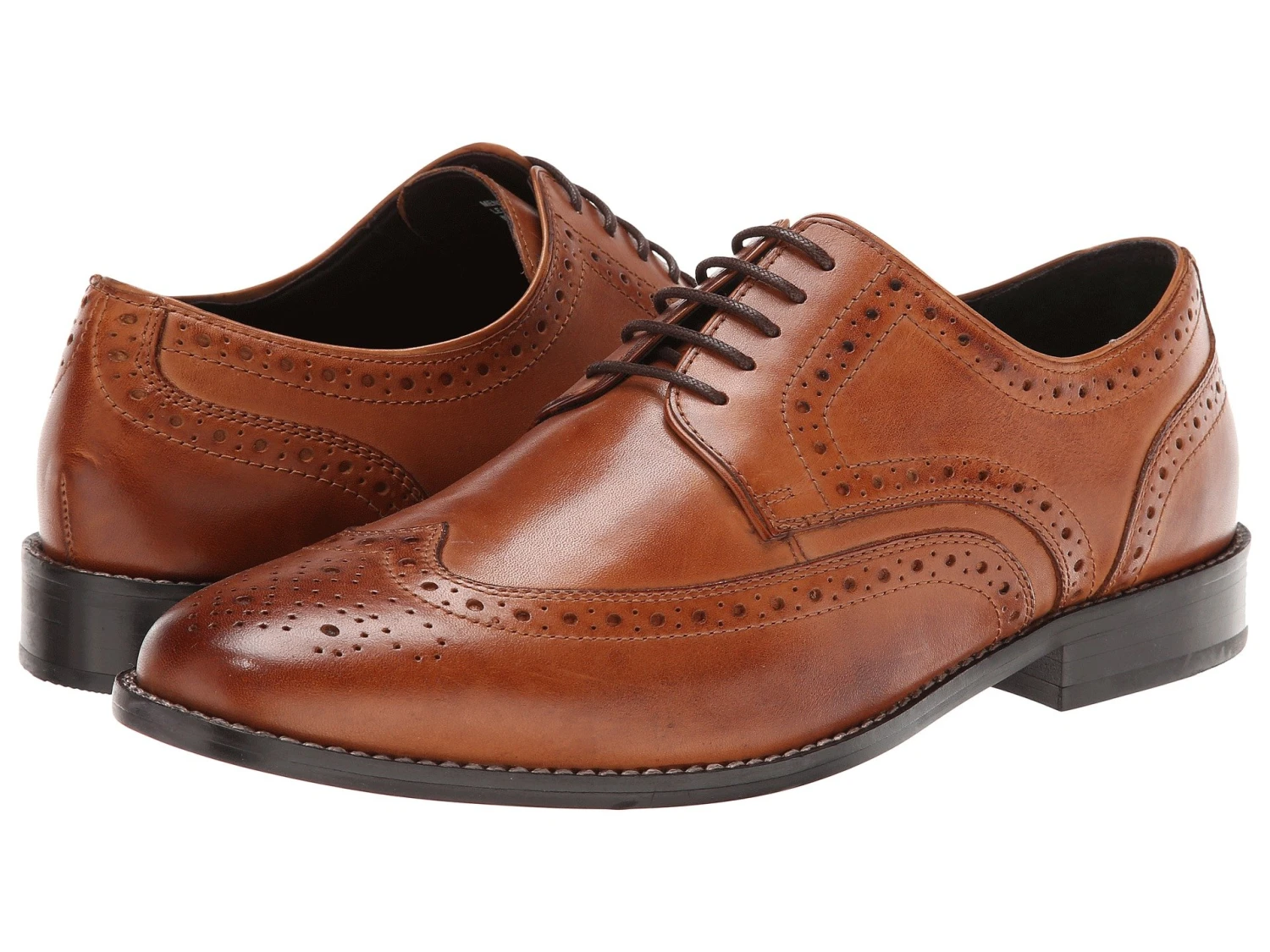 - Smooth genuine leather upper with wing tip toe and brogue design for added style.