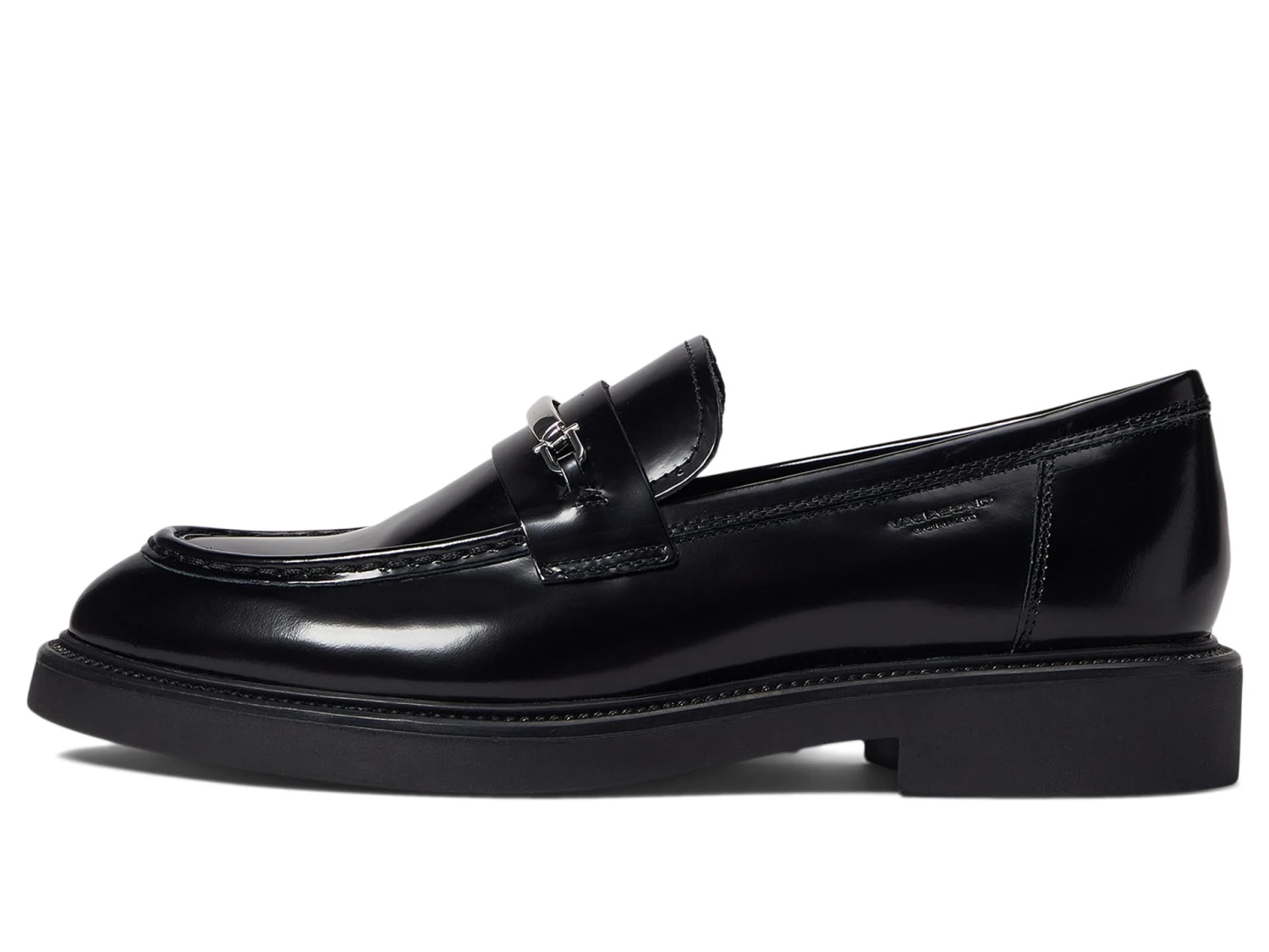 - The Vagabond Shoemakers® Alex W Polished Leather Chain Loafer is the everyday penny loafer crafted in black polished leather, featuring moc-toe details and a silver tone hardware across the vamp.