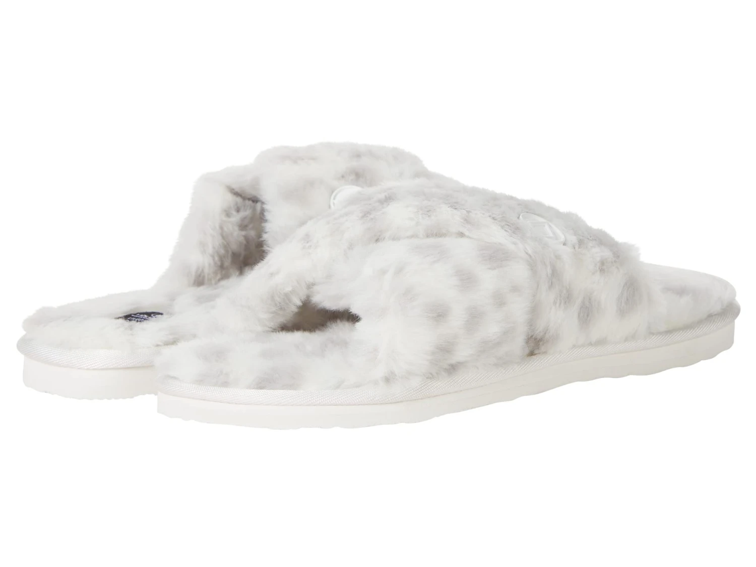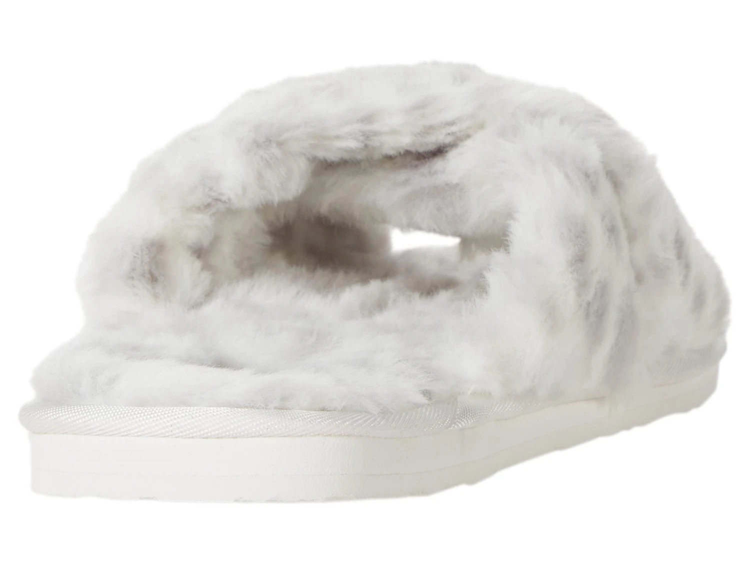 - Modern sandals are designed with a faux-fur cross strap.